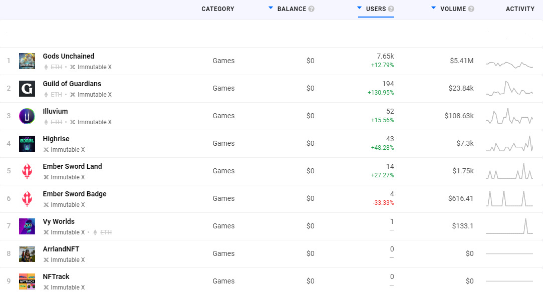 DappRadar: https://dappradar.com/rankings/protocol/immutablex/category/games