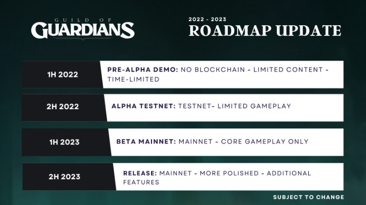 Guild of Guardians is a mobile role-playing game (RPG). It will be a mobile fantasy action RPG in which players will assemble their ideal team of 'Guardians' and compete in guilds for epic, tradeable rewards. Per the game documentation, the game will be fully launched in the second half of 2023. At the launch of the founder's NFT asset, the team recorded sales of over $14m at launch. The NFT marketplace for digital collectibles in the guild of guardian games continues to be active.